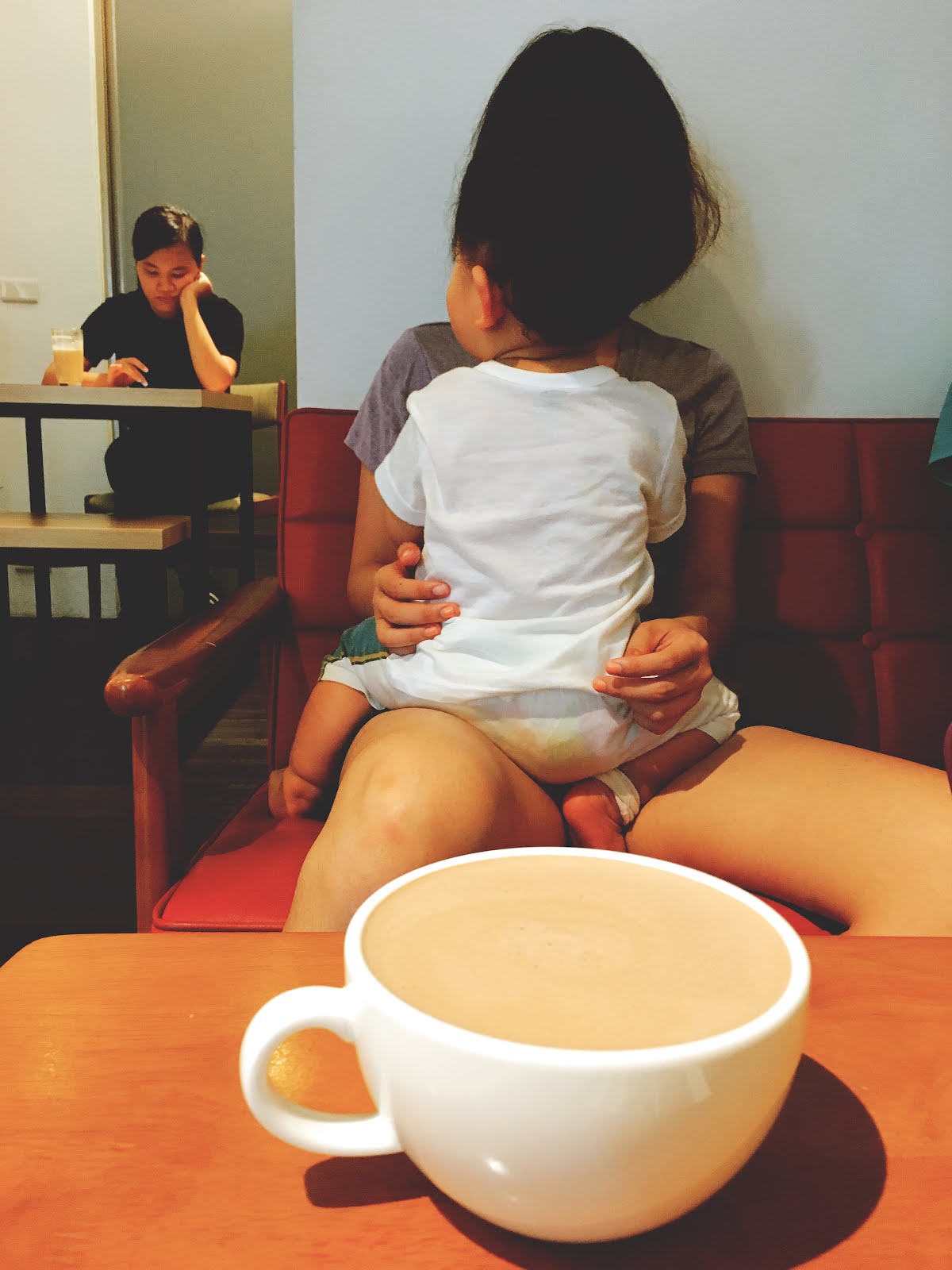 為了等Merrell特賣會開門,決定去旁邊的Riposo 驛 咖啡休息一下.小貝還算乖巧.不得不說三個人一起顧小孩真的有比較輕鬆啊!我竟可以安穩的喝完一大杯拿鐵並且上FB打卡!