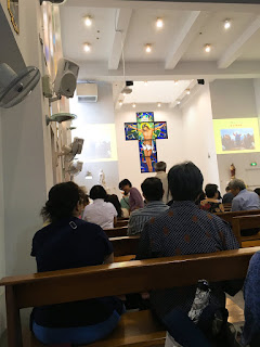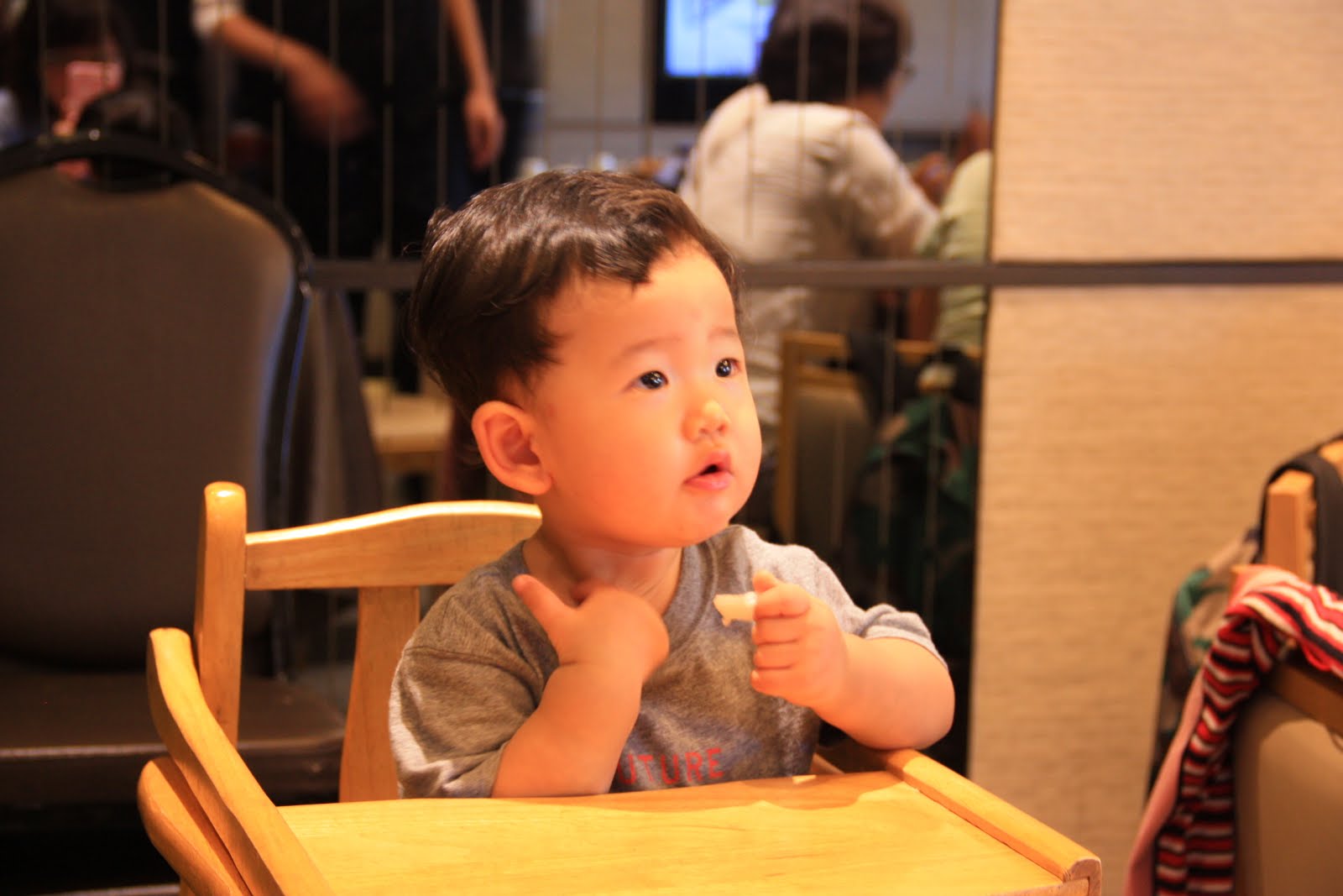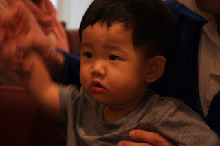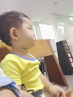 第二天一早雖然下著雨,但仍舊有和媽咪一起去教會主日。一起唱詩歌(貝貝用聽的)半小時,抱著貝貝擘餅喝杯,後來才帶進寶寶遊戲室。又再待了半小時。